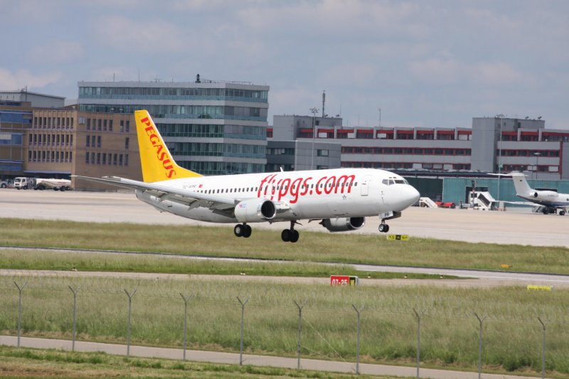 Eine Boeing 737-4Y0 der Pegasus Airlines mit der Kennung TC-APR aufgenommen am 30.05.09 am Stuttgarter Flughafen.