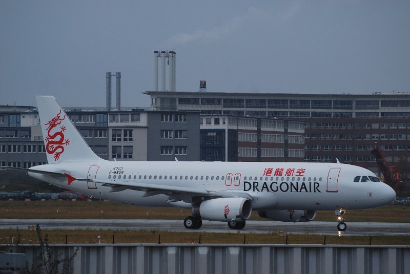 Airbus A320 F-WWDN der Dragonair kurz vor dem Start bei Airbus Finkenwerder.Aufgenommen am 26.10.09