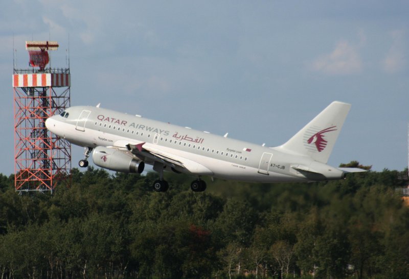 Qatar Airways A 319-133LR A7-CJB beim Start in Berlin-Tegel am 12.09.2009