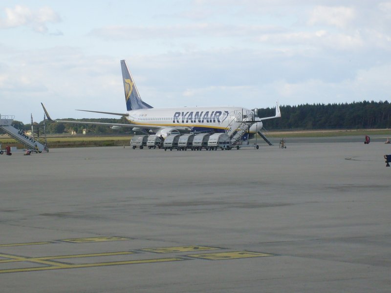 Ryanair EI-DWA heute aus Oslo im Flughafen Weeze gelandet.Später wird sie weiter fliegen nach Gran Canaria.(18.10.09)