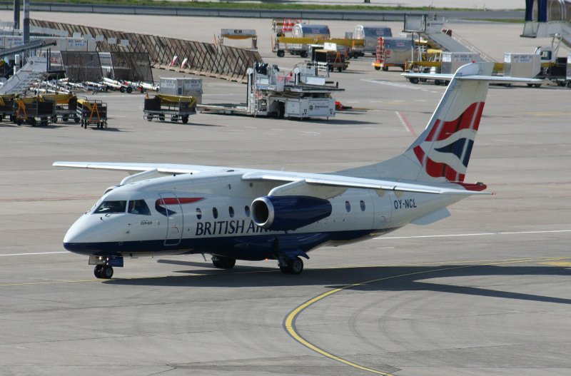 Sun Air of Scandinavia Dornier Do 328 Jet OY-NCL bei der Ankunft auf dem Flughafen Berlin-Tegel am 12.09.2009