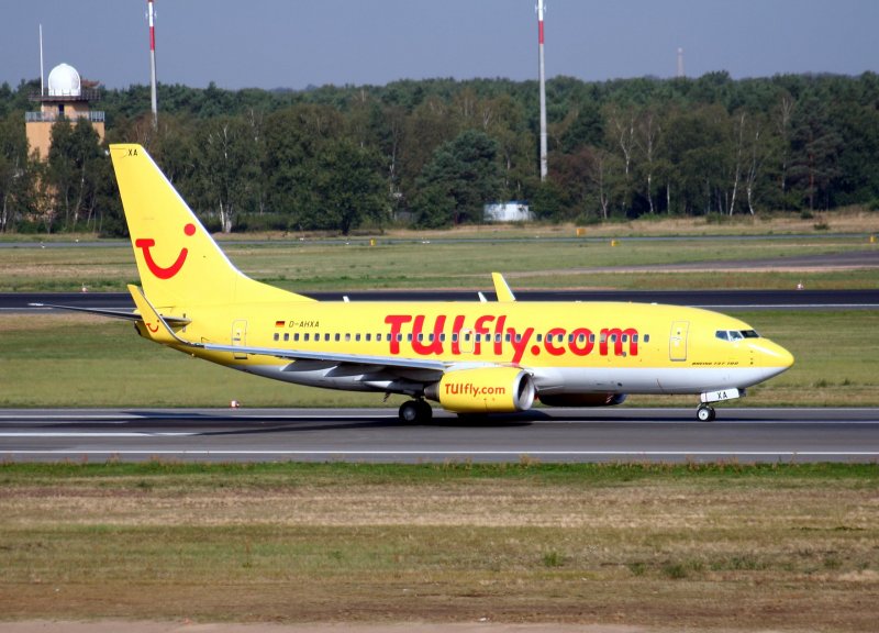 Germania B 737-75B D-AGER bei der Ankunft auf dem Flughafen Berlin-Tegel am 12.09.2009