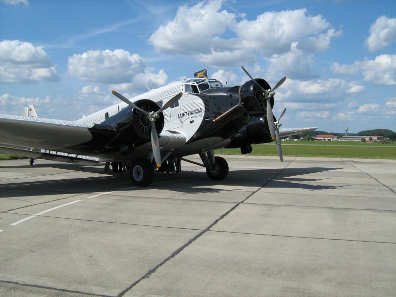 "Tante JU" wartet auf Rundfluggäste - Leider stand sie ungünstig, so dass etwas Tragfläche abgeschnitten ist.