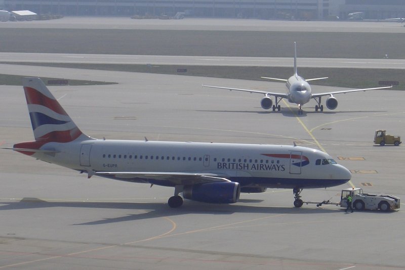 Airbus A319-100 der British Airways beim Push-back in Stuttgart
