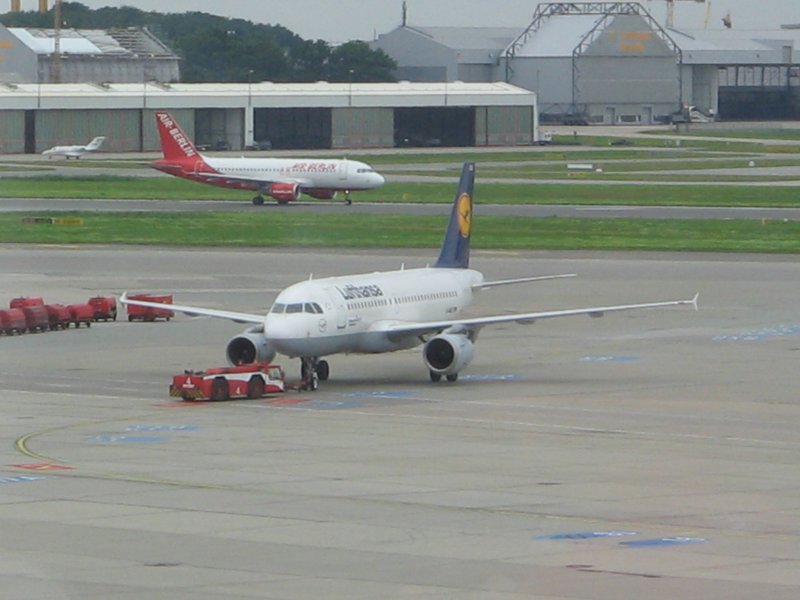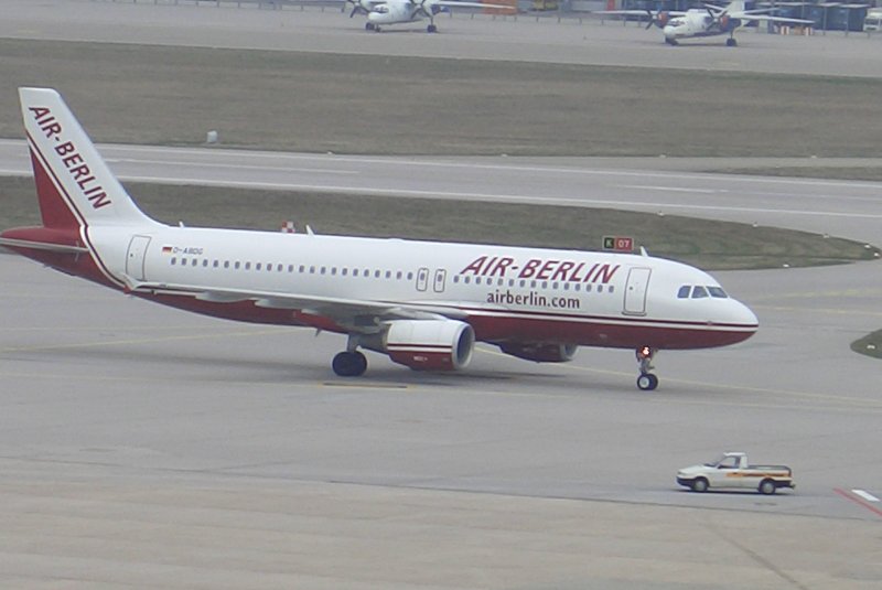 Ein Airbus A320 der Air Berlin nach dem Push-back in Stuttgart