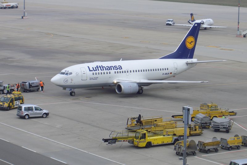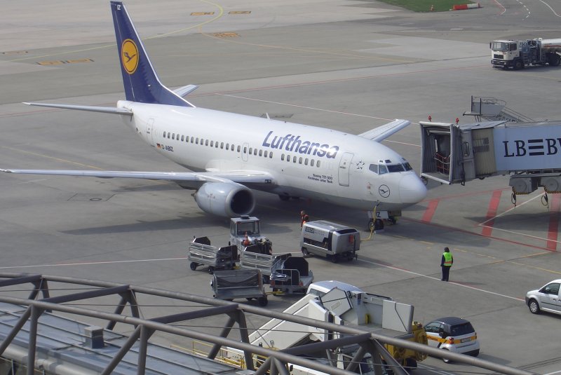 Boeing 737-500 der Lufthansa am Terminal des Stuttgarter Flughafens