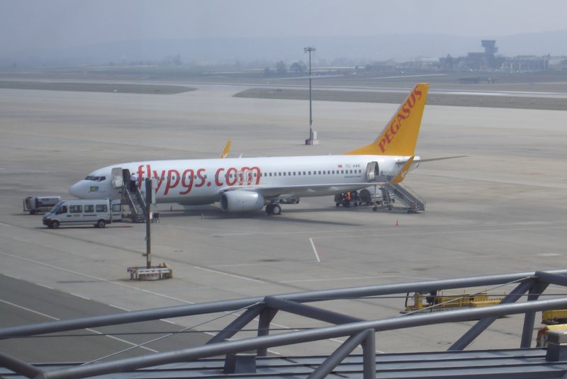 Boeing 737-800 der Pegasus Airlines auf ihrer Vorfeld-Position des Airport Stuttgart