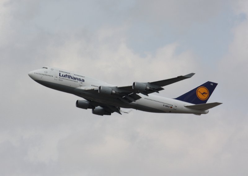 Boeing 747-400 "Rheinland-Pfalz"; Kennung D-ABVT von LUFTHANSA startet am 02.09.2009 von Frankfurt/Main Flughafen.