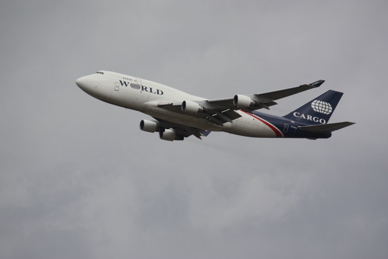 Boeing 747-400F; Kennung N-741WA von WOLRD CARGO startet am 05.09.2009 auf Startbahn/West von Frankfurt/Main Flughafen.