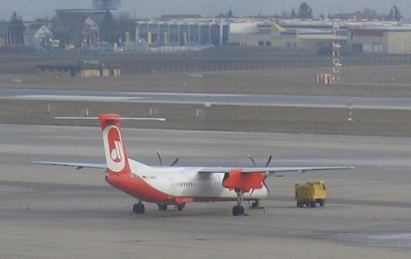 Dash 8Q-400 der Air Berlin auf dem Stuttgarter Flughafenvorfeld