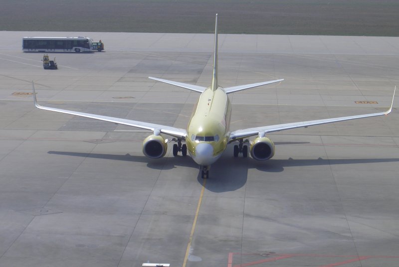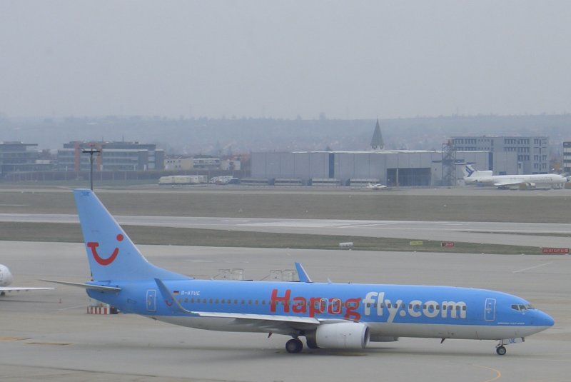 Hapagfly-Boeing 737-800 mit der Kennung D-ATUE nach dem Push-back in Stuttgart