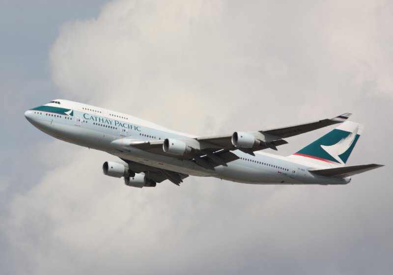 Eine Boeing 747-400; Kennung B-HKD von CATHAY PACIFIC startet am 02.09.2009 von Frankfurt/Main Flughafen.