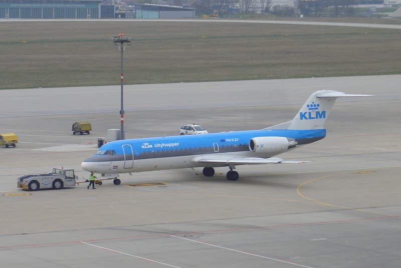 KLM-cityhopper-Fokker 70 beim Push-back auf dem Flughafen Stuttgart