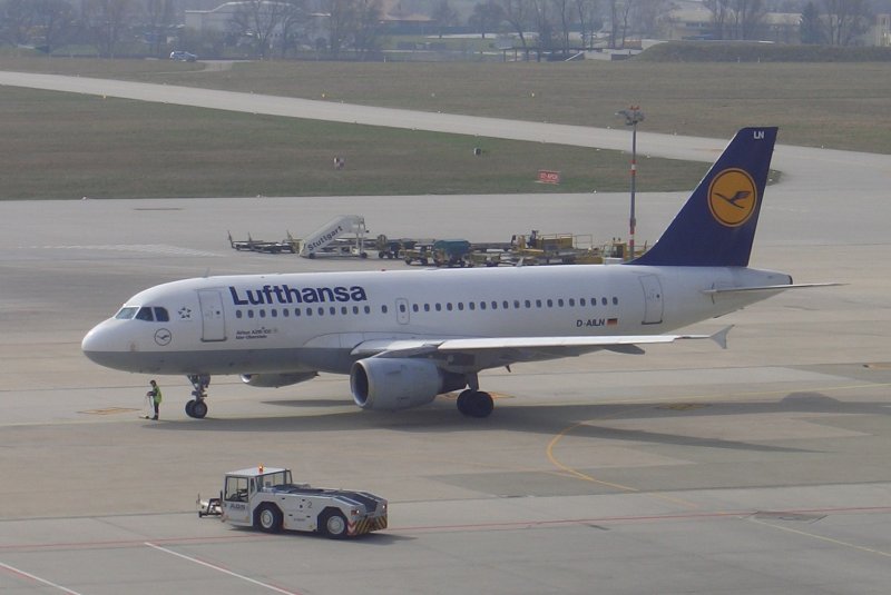 Lufthansa-Airbus A319-100 nach dem Push-back auf dem Flughafen Stuttgart