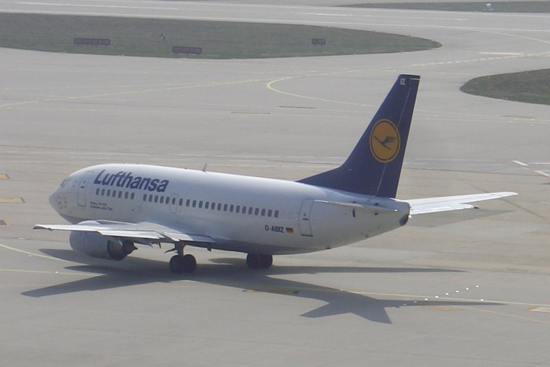 Boeing 737-500 der Lufthansa nach dem Push-back in Stuttgart
