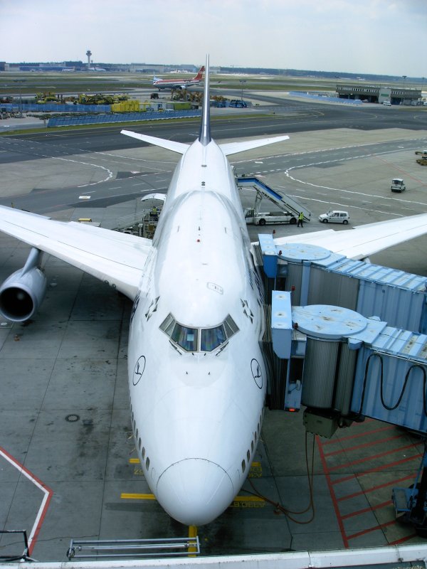 Lufthansa-Boeing 747-400 am Terminal 1 des Frankfurter Flughafens