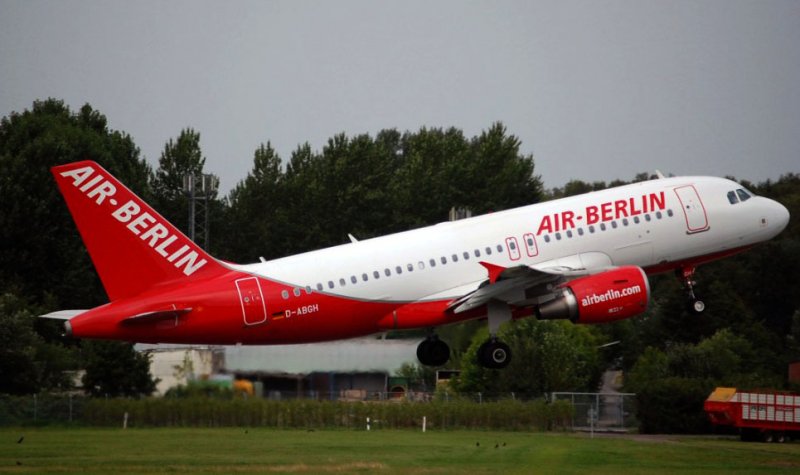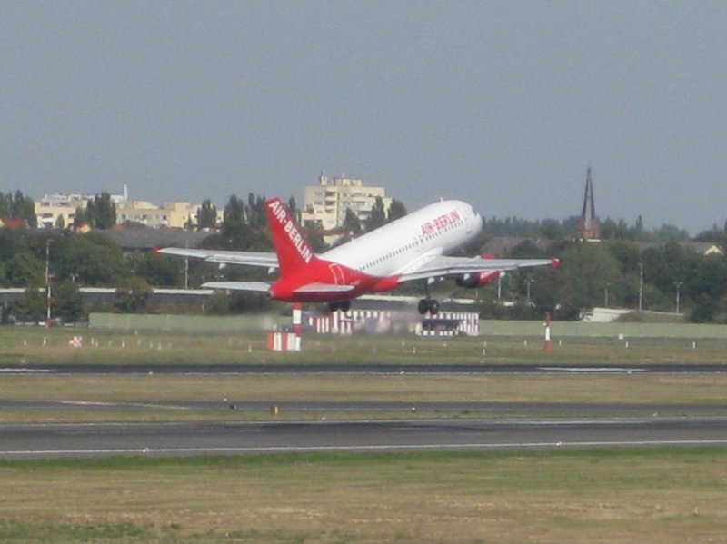 Air Berlin-Airbus A320 beim Start in Berlin-Tegel auf der Runway 08R