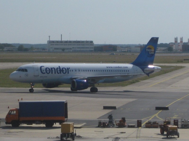 Airbus A320 der Fluggesellschaft Condor nach der Landung auf dem Flughafen Berlin-Schönefeld