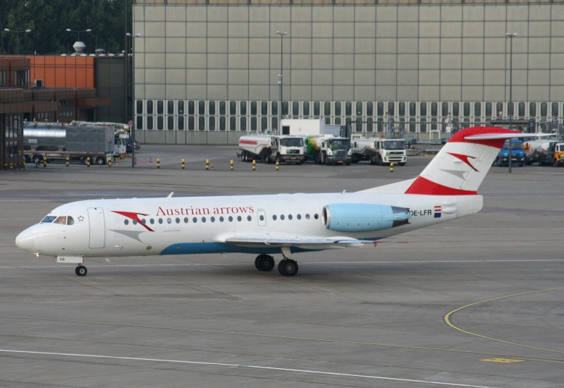 Austrian Arrows Fokker 70 OE-LFR bei der Ankunft auf dem Flughafen Berlin-Tegel am 12.09.2009