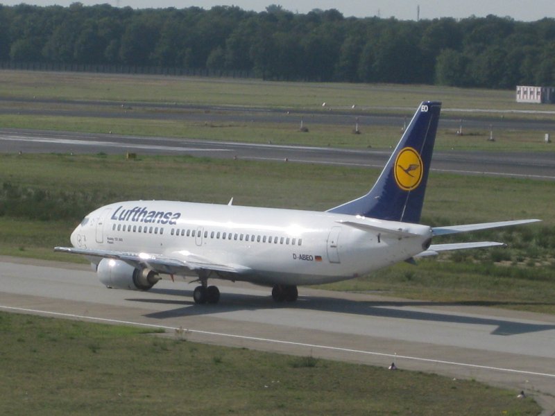 Lufthansa B 737-530 D-ABJC "Erding" bei der Ankunft auf dem Flughafen Berlin-Tegel am 30.08.2009