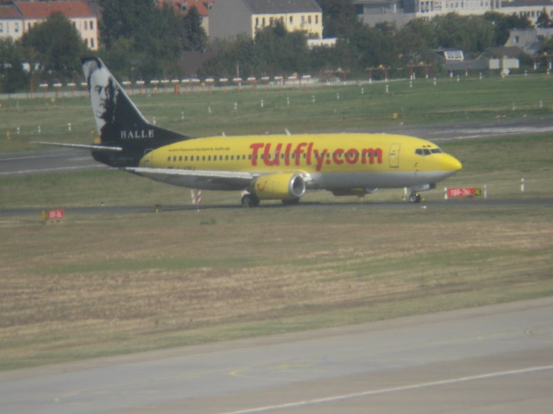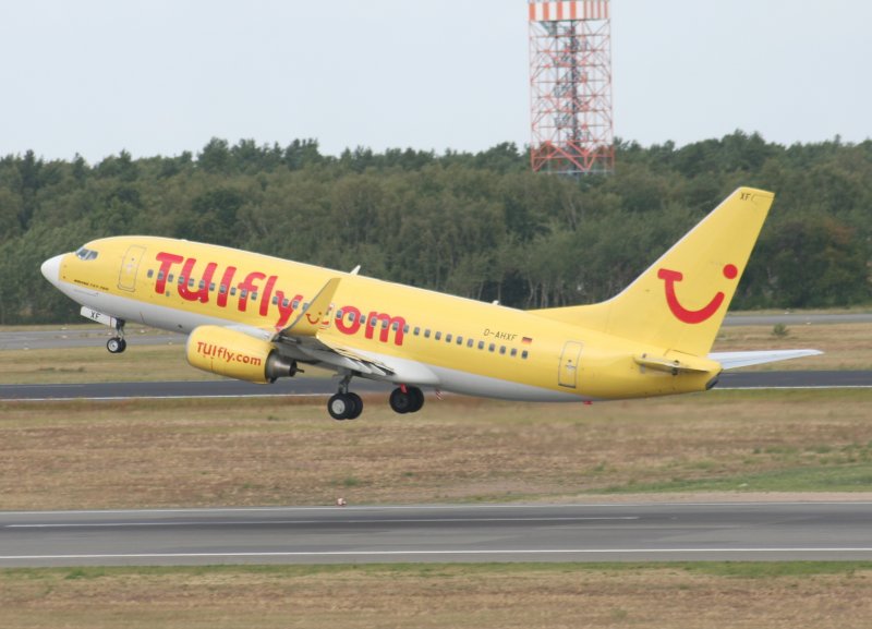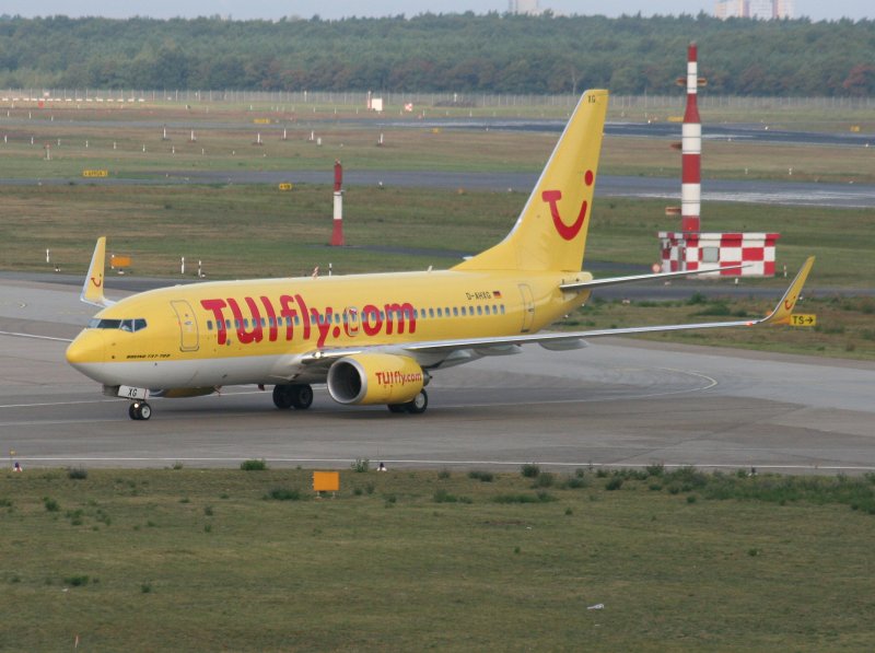 Tuifly B 737-7K5 D-AHXG bei der Ankunft auf dem Flughafen Berlin-Tegel am 12.09.2009