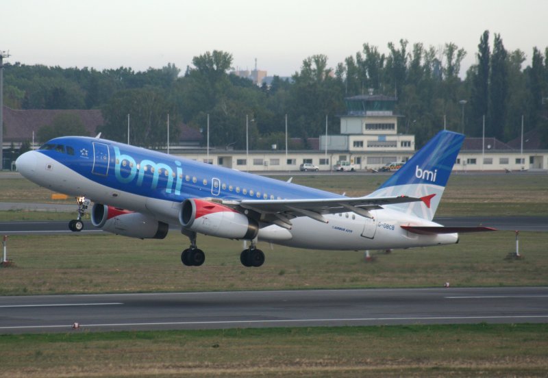 British Midland(BMI) A 319-131 G-DBCB beim Start in Berlin-Tegel am 12.09.2009