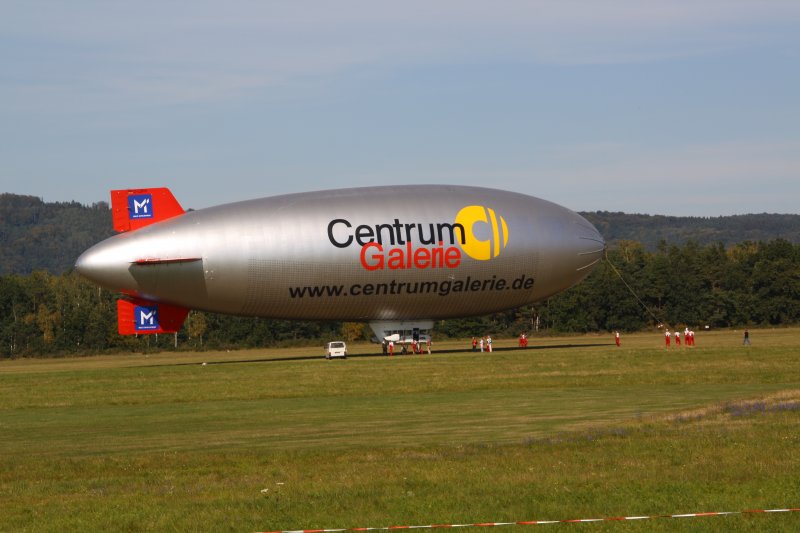 Dieses Luftschiff dient als Werbeträger für das neue Dresdner Einkaufzentrum. Hier weilt es am 19.09.09 auf dem Flugplatz Pratzschwitz um neue Fluggäste aufzunehmen.