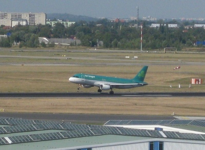 Ein Airbus A320 der irländischen Fluggesellschaft Aer Lingus startet auf der Runway 07R des Berliner Flughafens Schönefeld (SXF)