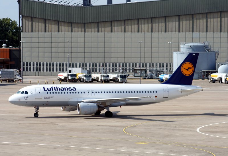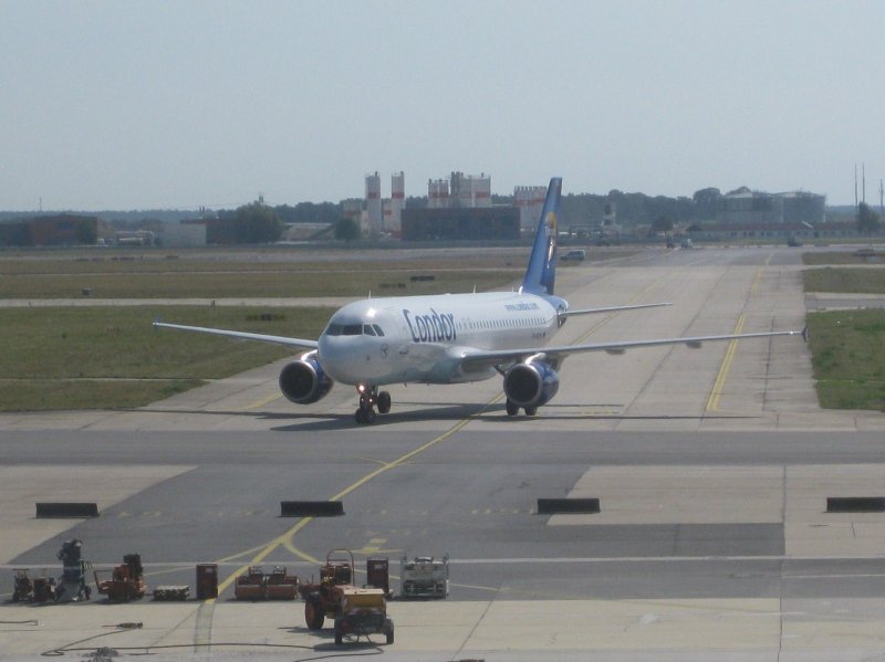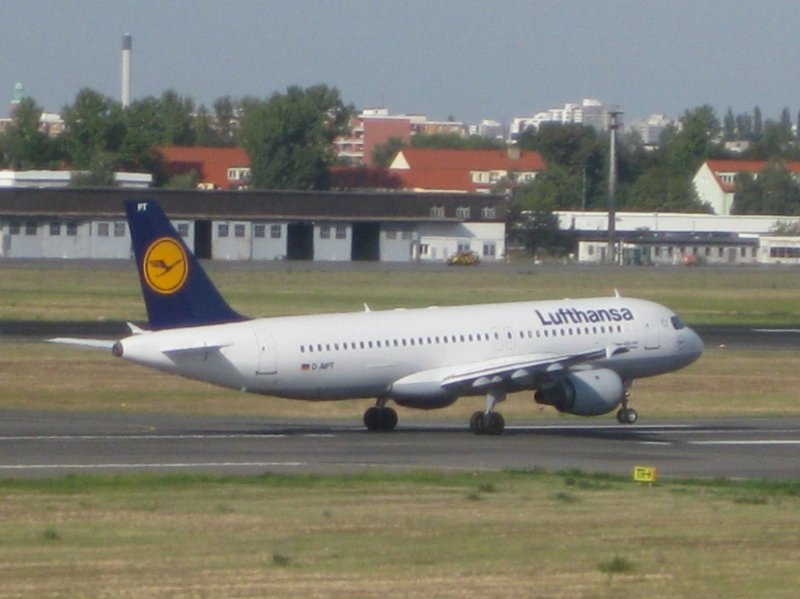 Lufthansa A 320-211 D-AIPK "Wiesbaden" bei der Ankunft auf dem Flughafen Berlin-Tegel am 30.08.2009