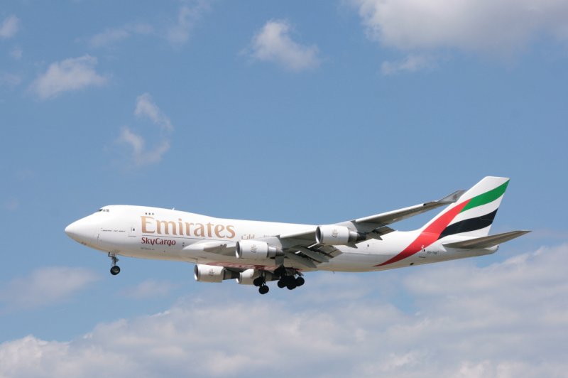 Emirates Sky Cargo OO-THD Boing 747-400 im Anflug auf Frankfurt / Main Airport.