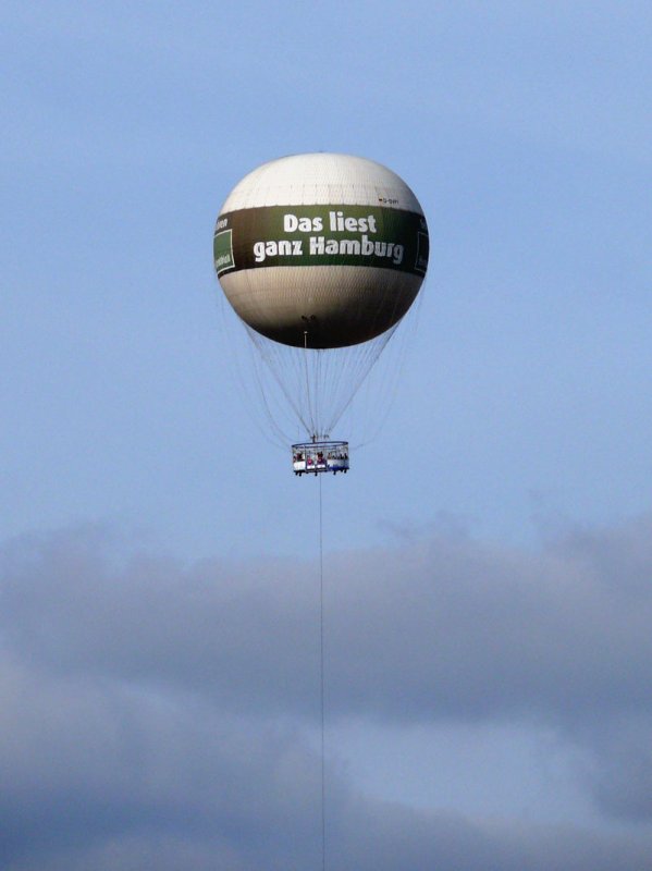 "Hamburgs höchster Aussichtspunkt": Highflyer, einer der weltweit größten Fesselballons mit Werbung "Das liest ganz Hamburg" in ca. 150 m Höhe; 17.09.2009