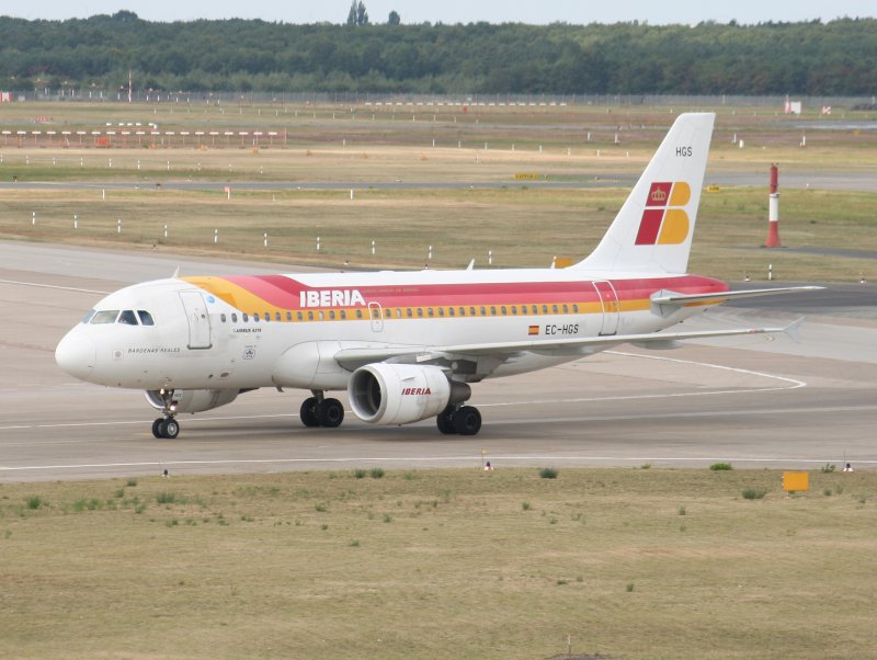 Iberia A 319-111 EC-HGS bei der Ankunft auf dem Flughafen Berlin-Tegel am 30.08.2009