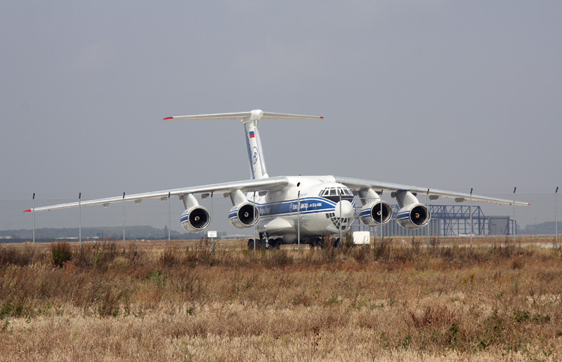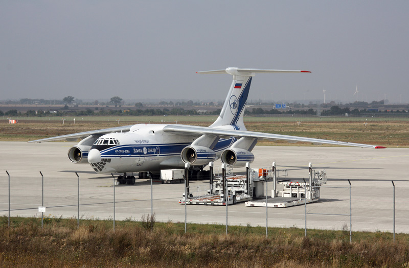 Seit kurzem setzt die Ruslan Salis ab Schkeuditz auch eine IL 76 ein. Hier steht sie am 22.09.2009 auf dem Frachtfeld-Süd des Flughafens Leipzig-Halle.