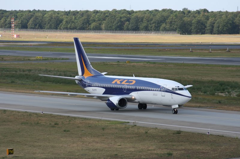 KD Avia B 737-3M8 EI-DTY bei der Ankunft auf dem Flughafen Berlin.Tegel am 30.08.2009