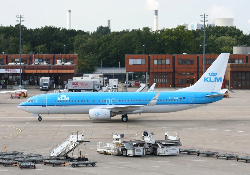 KLM B 737-8K2 PH-BXE bei der Ankunft auf dem Flughafen Berlin-Tegel am 30.08.2009