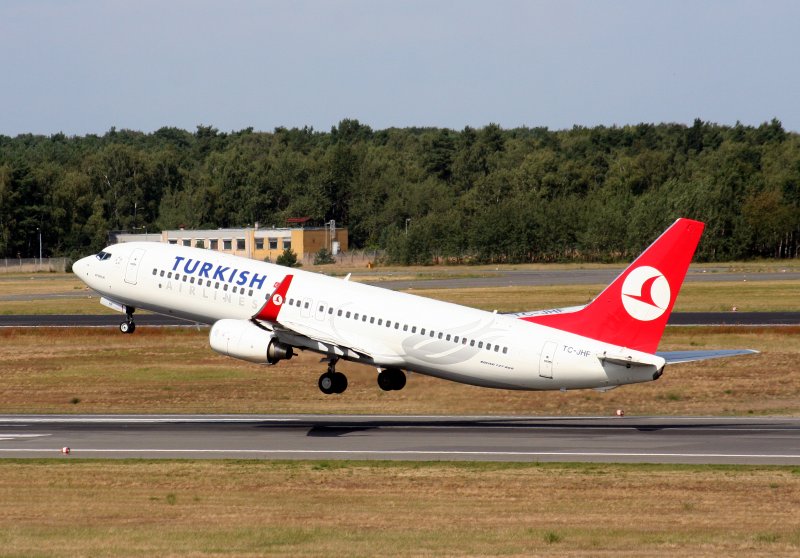 Turkish Airlines B 737-8F2 TC-JHF beim Start in Berlin-Tegel am 30.08.2009