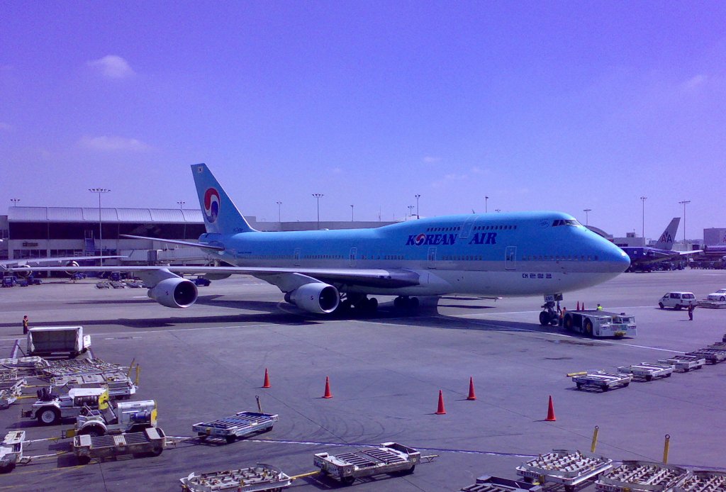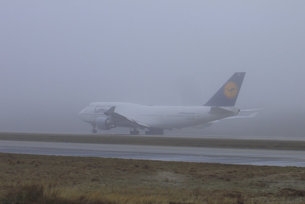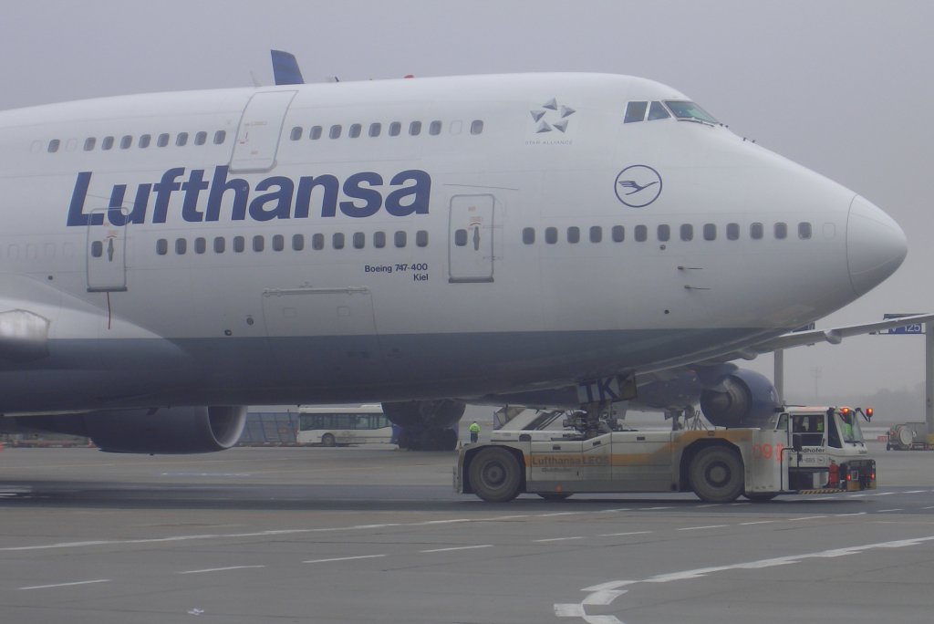 Lufthansa-Boeing 747-400 beim Push-back in Frankfurt am Main am 6. Februar 2010