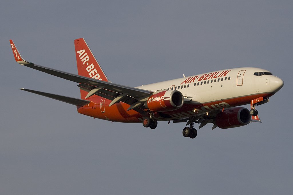 Air Berlin (D-ABAQ Boing 737-800) am Flughafen Düsseldorf,7.2.2010.
