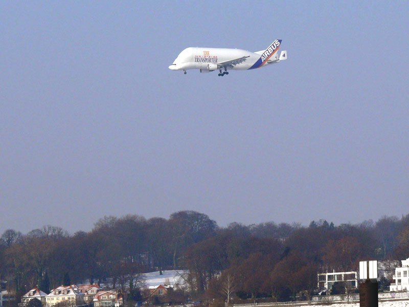 AIRBUS Beluga 4 "THE SUPER TRANSPORTER" beim Landeanflug auf Finkenwerder; 17.02.10