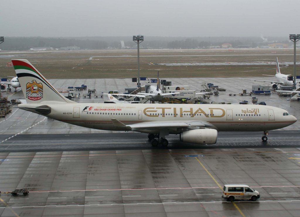 Emirates (A6-EMM Boing 777-300) am Flughafen Düsseldorf,7.2.2010.