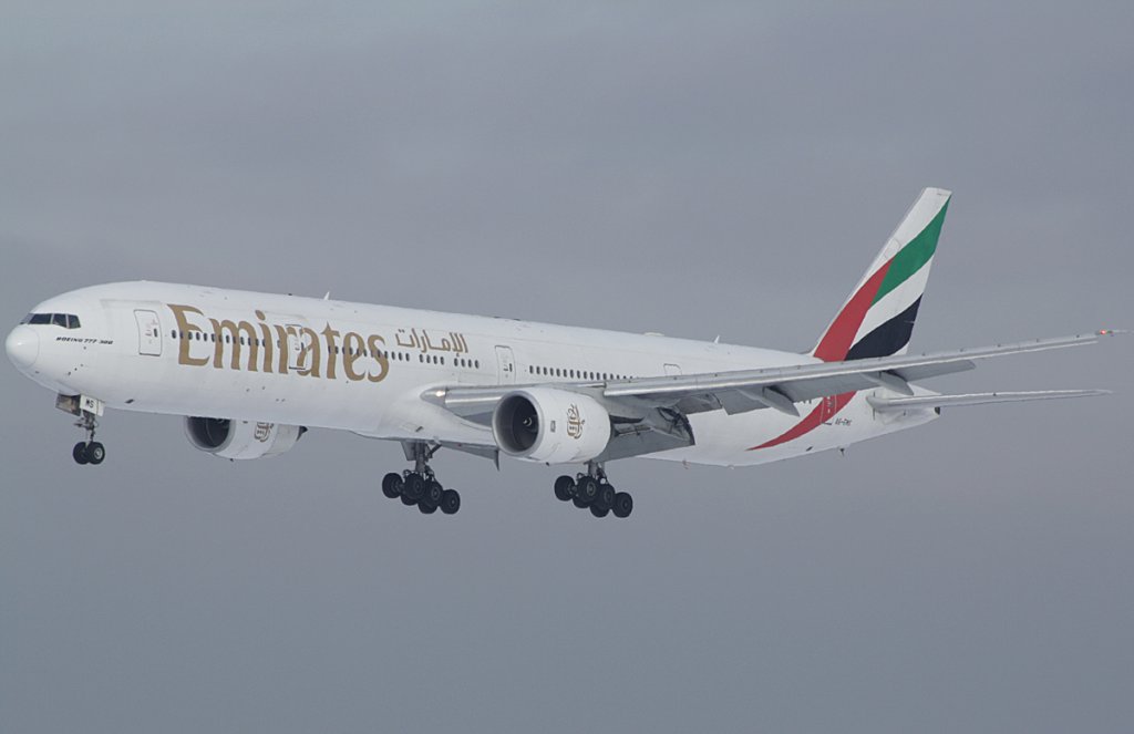 A6-EMS (Boeing 777-31H) im Anflug auf DUS am 06.01.2009.