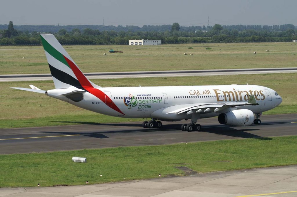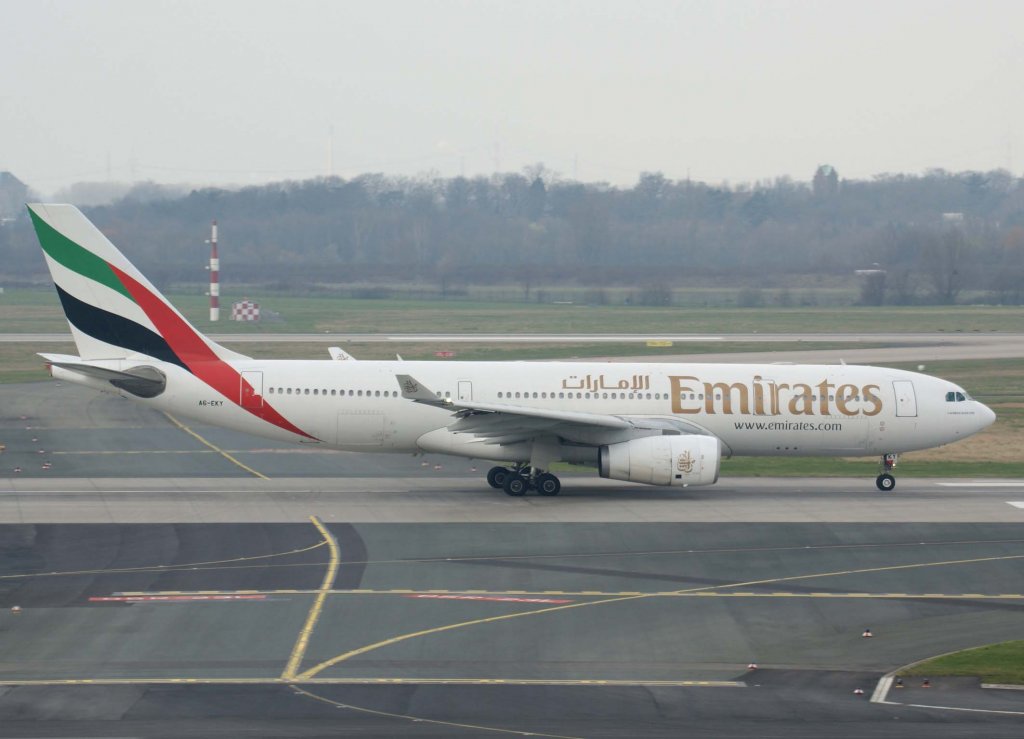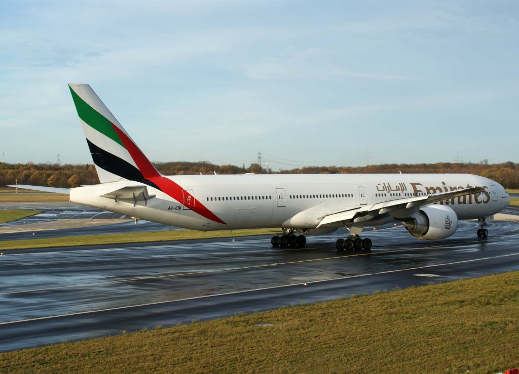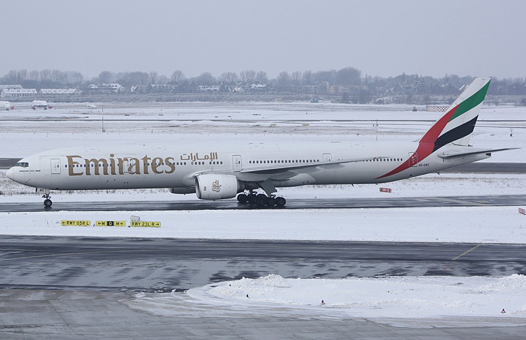 A6-EMT (Boeing 777-31H) der Emirates kurz nach der Landung in DUS am 04.01.2010.