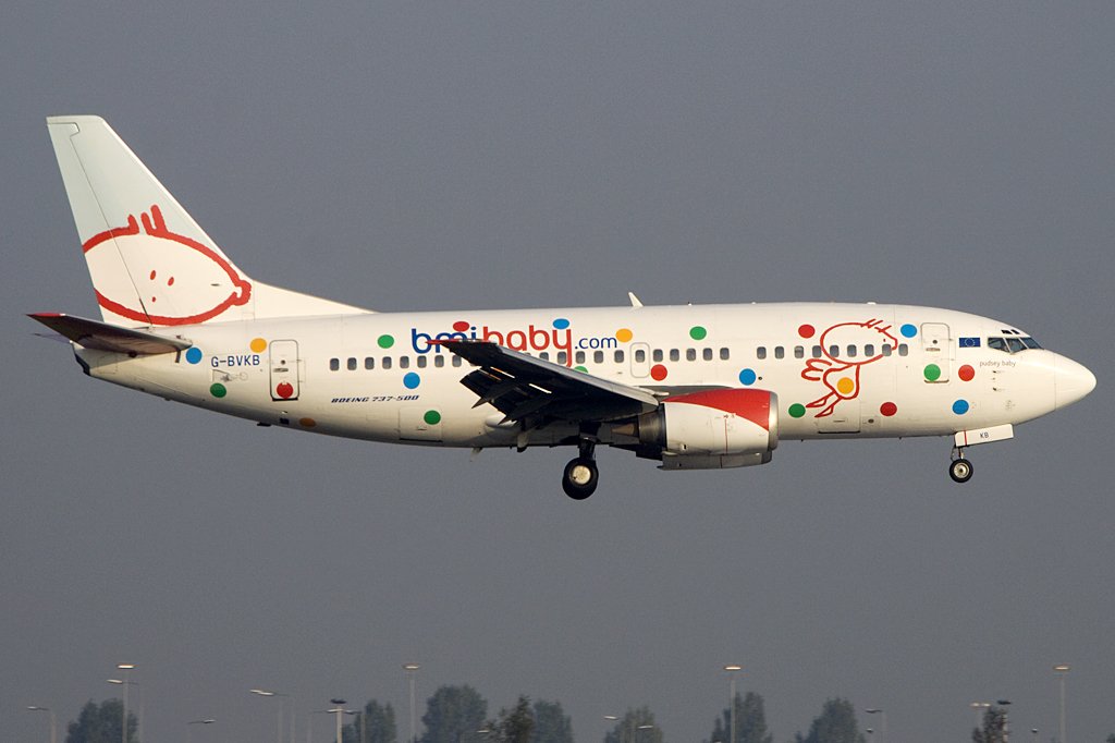 BMI Baby, G-BVKB, Boeing, B737-59D, 19.09.2009, AMS, Amsterdam, Niederlande