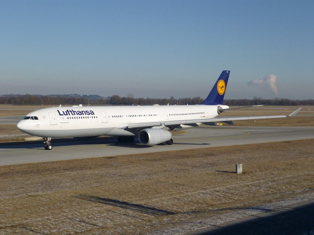 Ein Airbus A330, der Lufthansa, mit Registration D-AIKI, am Flughafen München.