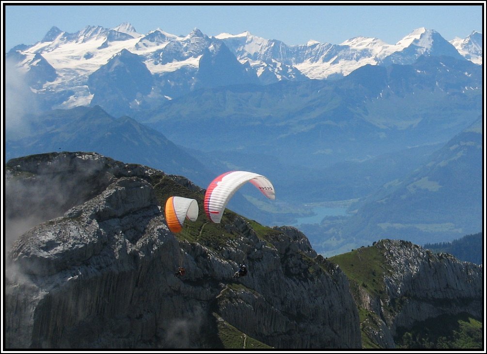 Gleitschirmflieger am Pilatus in der Schweiz, aufgenommen am 26.07.2009.