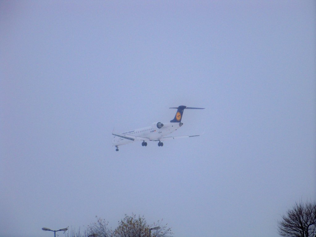Lufthansa City Line, Bombardier CRJ701ER, D-ACPB bei der Landung am Hamburger Flughafen. Aufgenommen am 19.12.09.