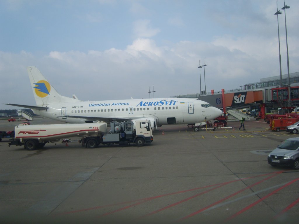 AeroSvit, B737-3Q8, UR-VVL auf dem Hamburger Flughafen. Aufgenommen am 29.3.09.