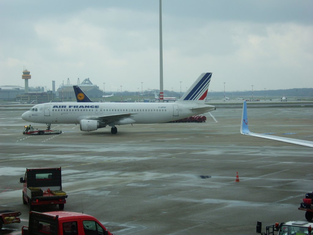 Air France, A320-111, F-GFKF auf dem Hamburger FLugahfen. Aufgenommen am 29.03.09.