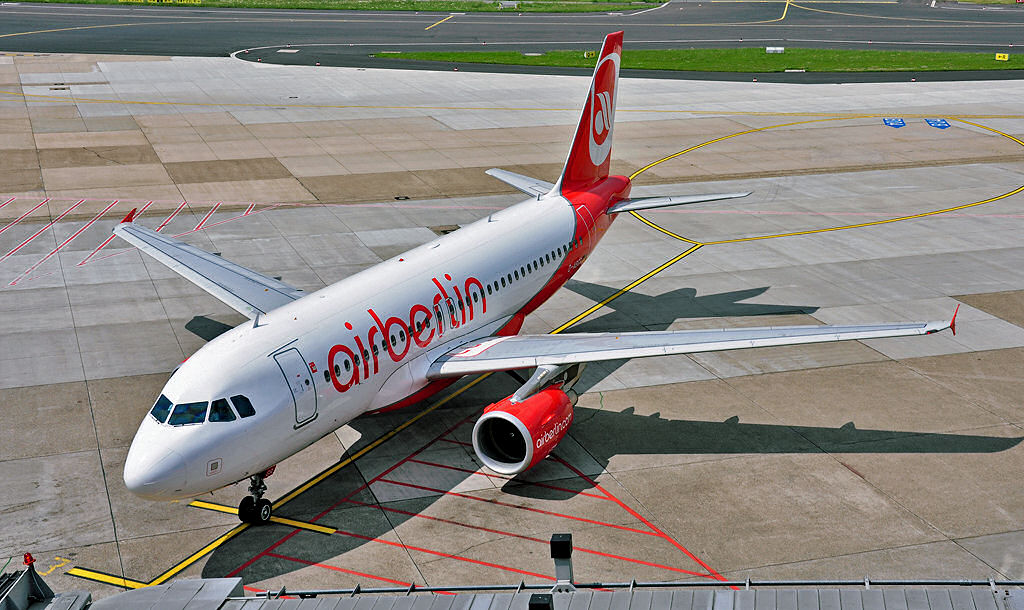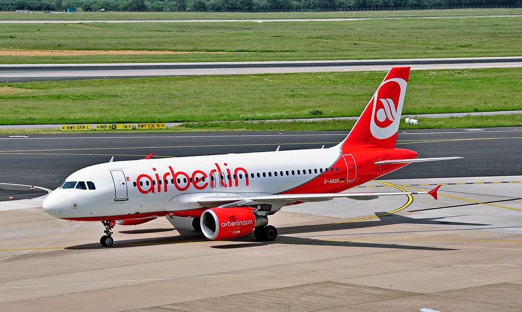 A 319-112 der Air Berlin, D-ABGR, auf dem Rollweg in Düsseldorf - 07.06.2010