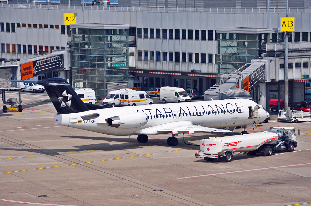 Fokker 100 "Star Alliance" bei der Betankung am Gate A13 in Düsseldorf - 07.06.2010
